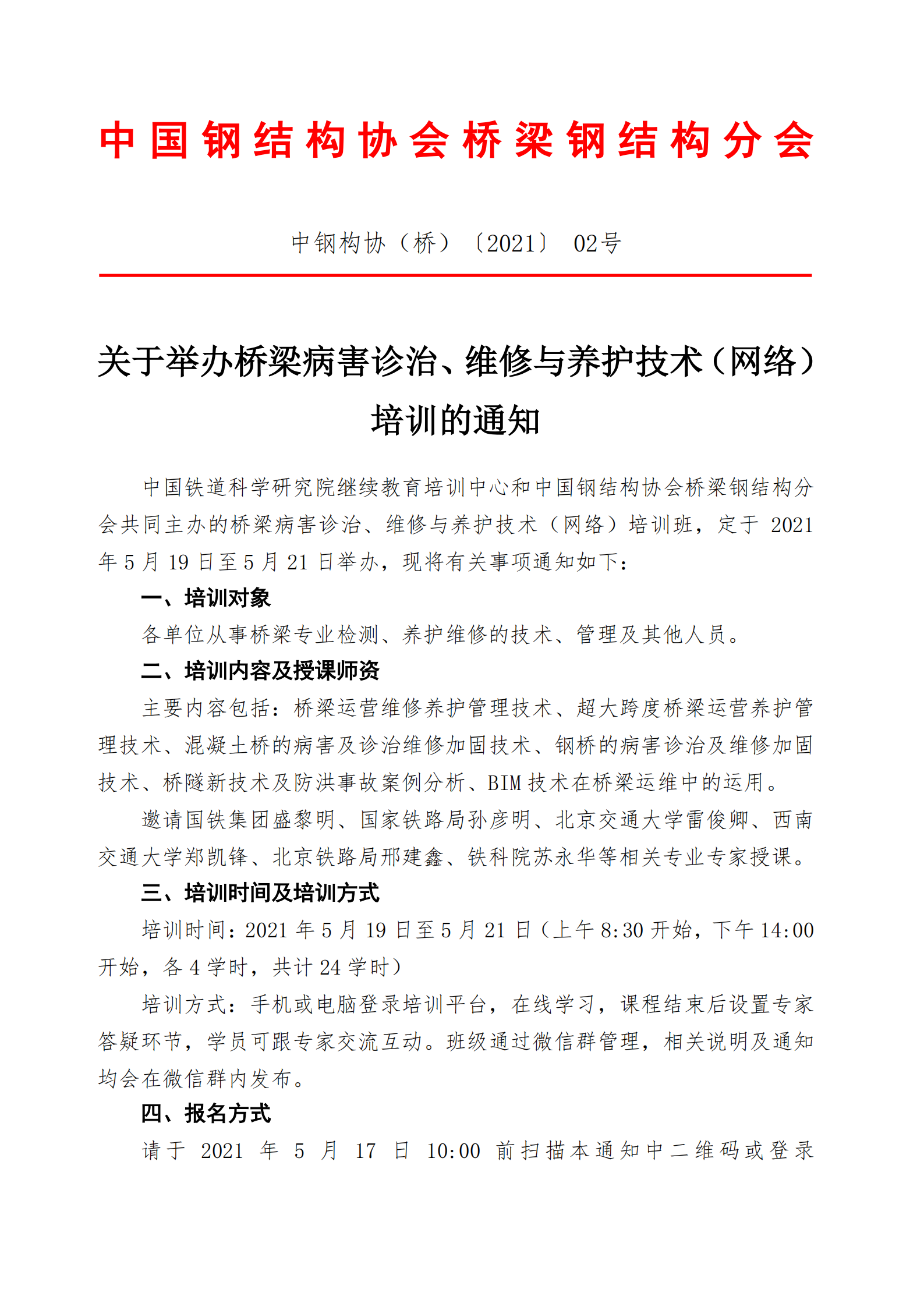 中國鋼結構協會橋梁鋼結構分會關于舉辦橋梁病害診治、維修與養護技術(網絡)培訓的通知